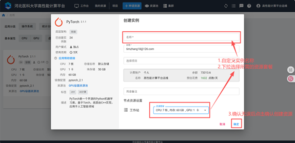 在实例设置中填写资源需求信息。