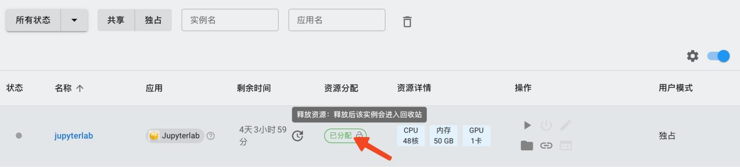 如果平台当前可用资源已经全部分配完毕,该实例申请后需要排队等待分配,此时无法启动实例。