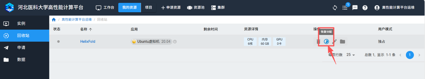 释放后的实例可以从回收站内恢复,重新再启动使用。