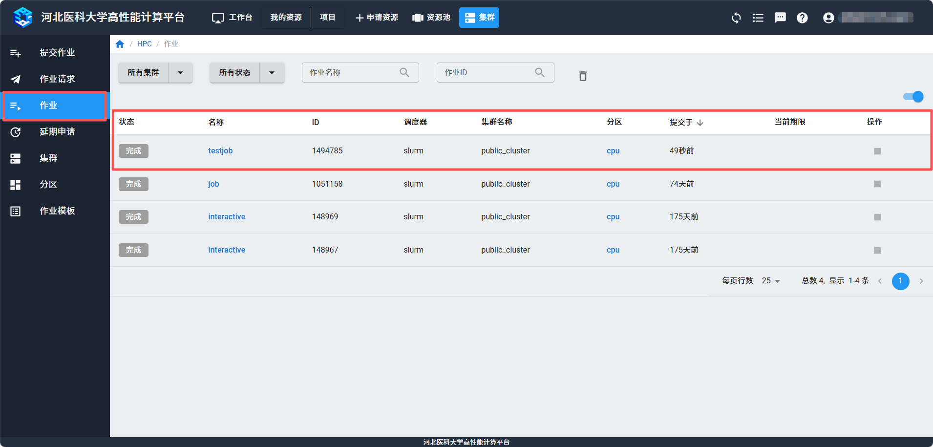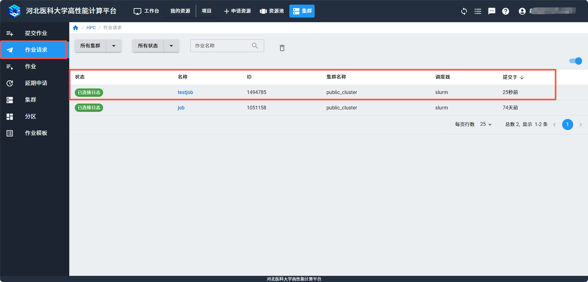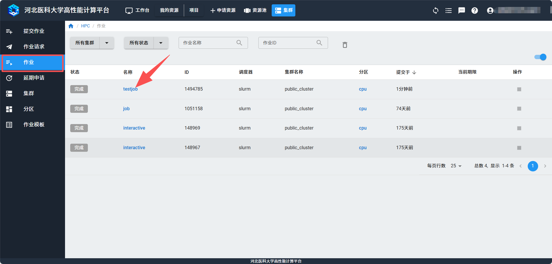 提交作业后,可以在“作业”页面查看是否提交成功。