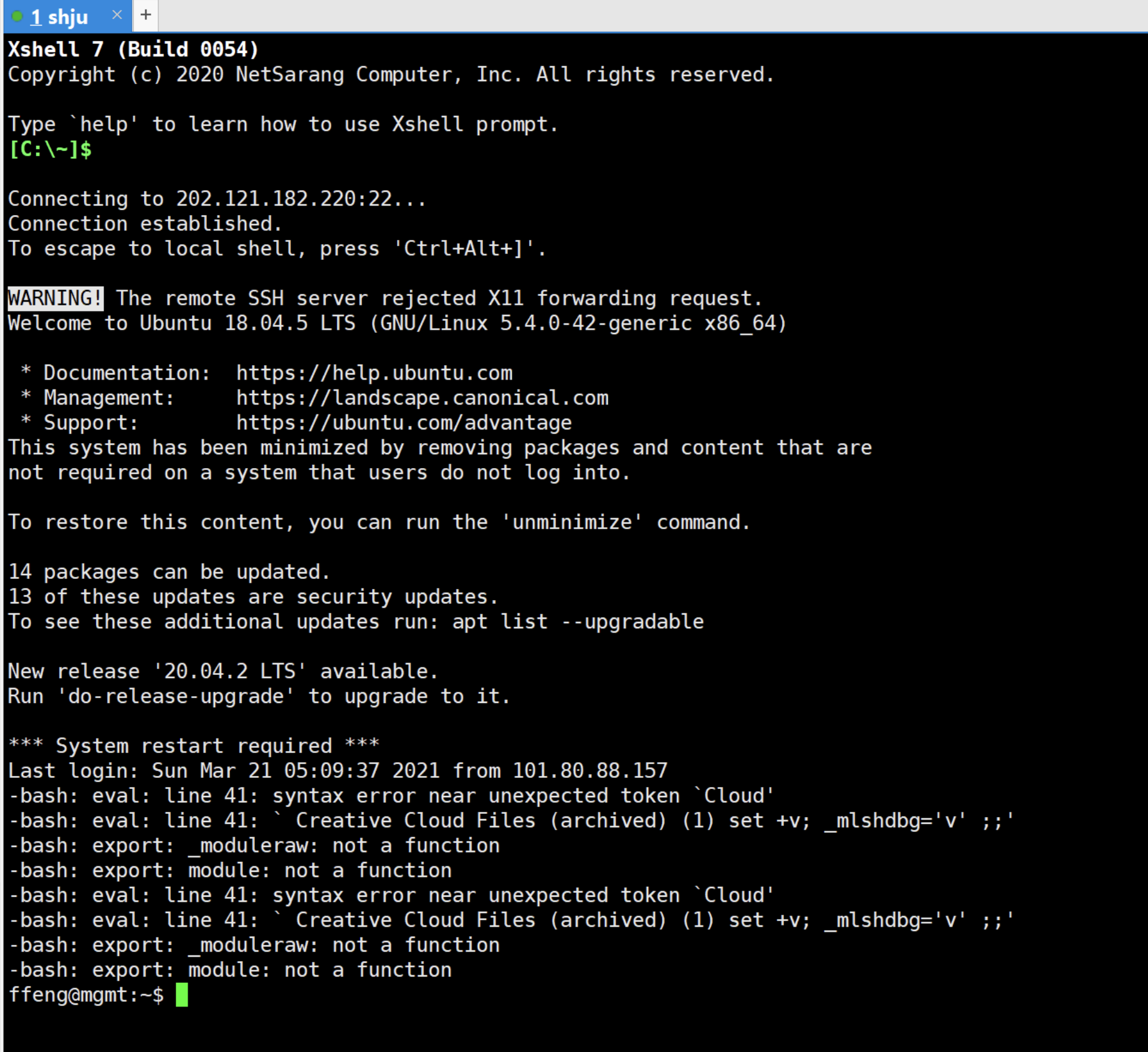 在 首次使用 SSH登录之前,需要通过平台管理界面重置密码。
