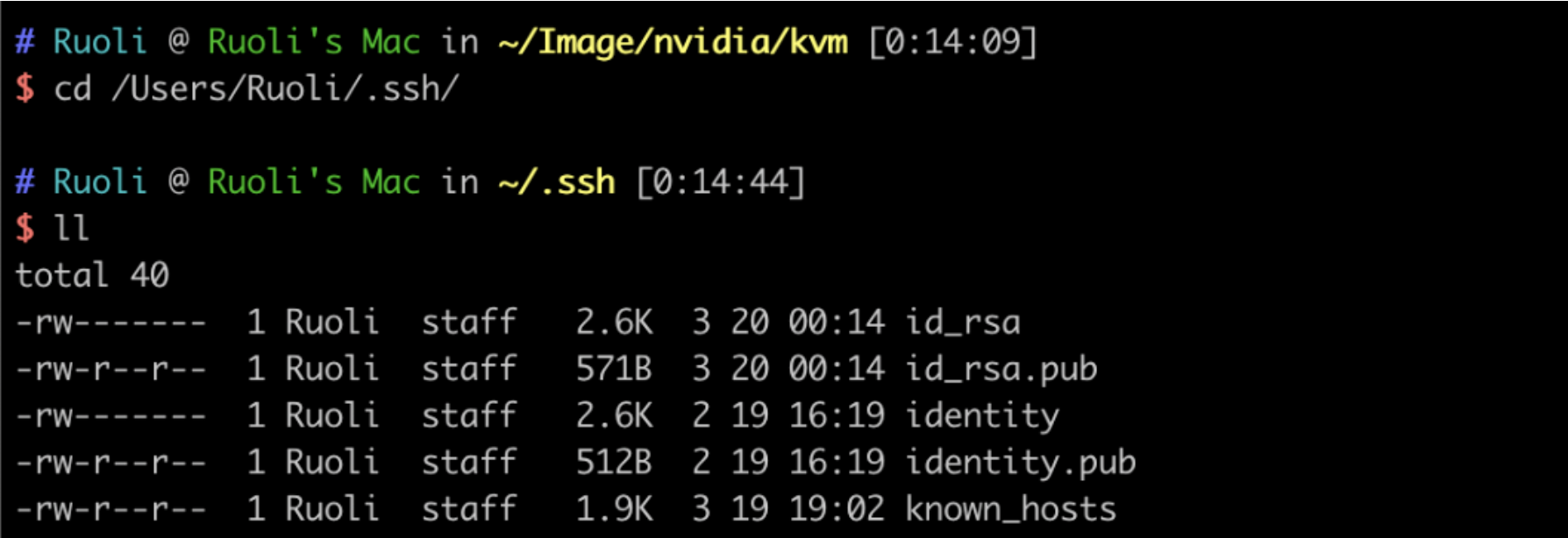 如果默认位置已经生成过公私钥,则终端会提示是否需要覆盖,这时可不用再次生成公私钥。