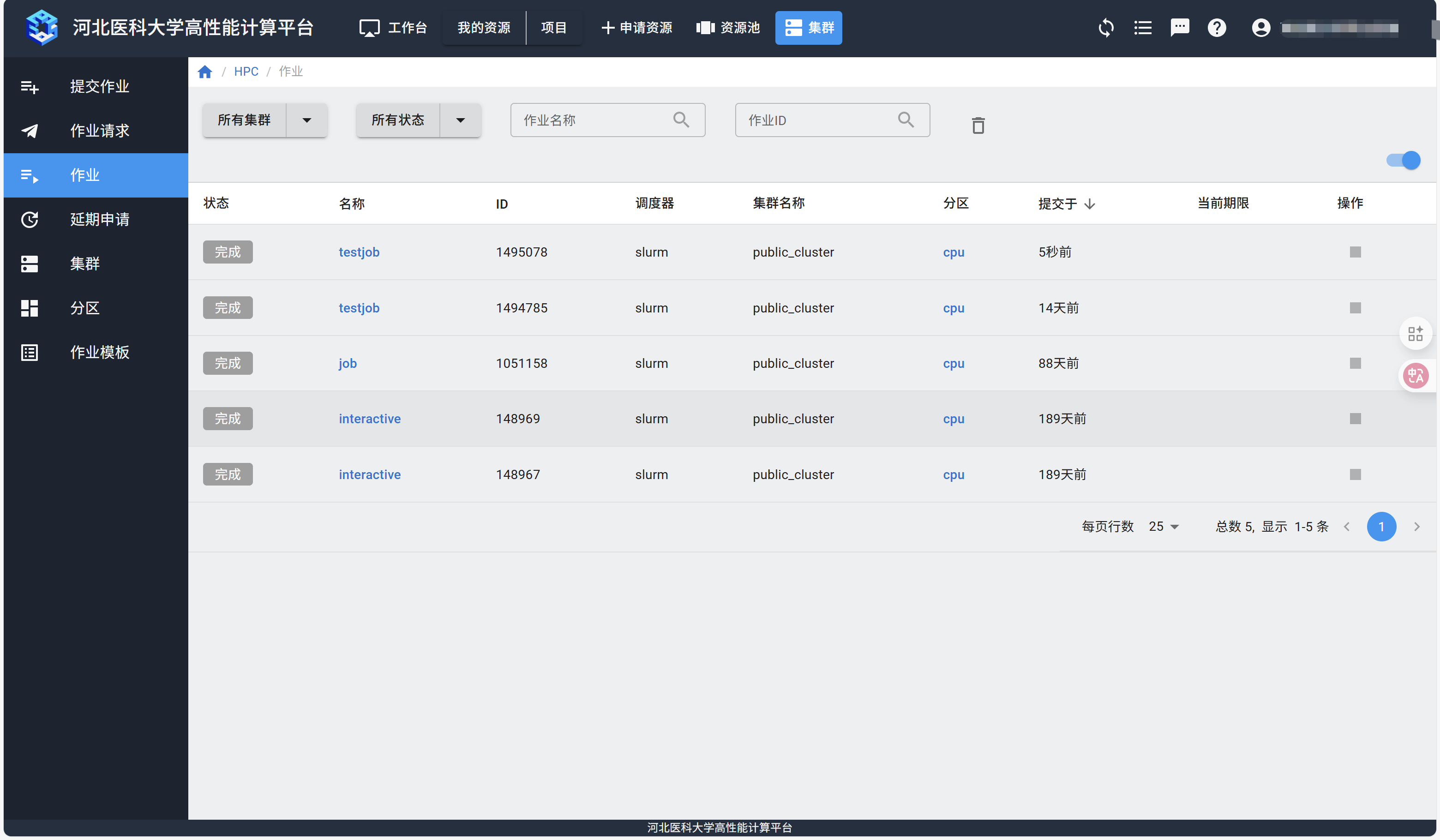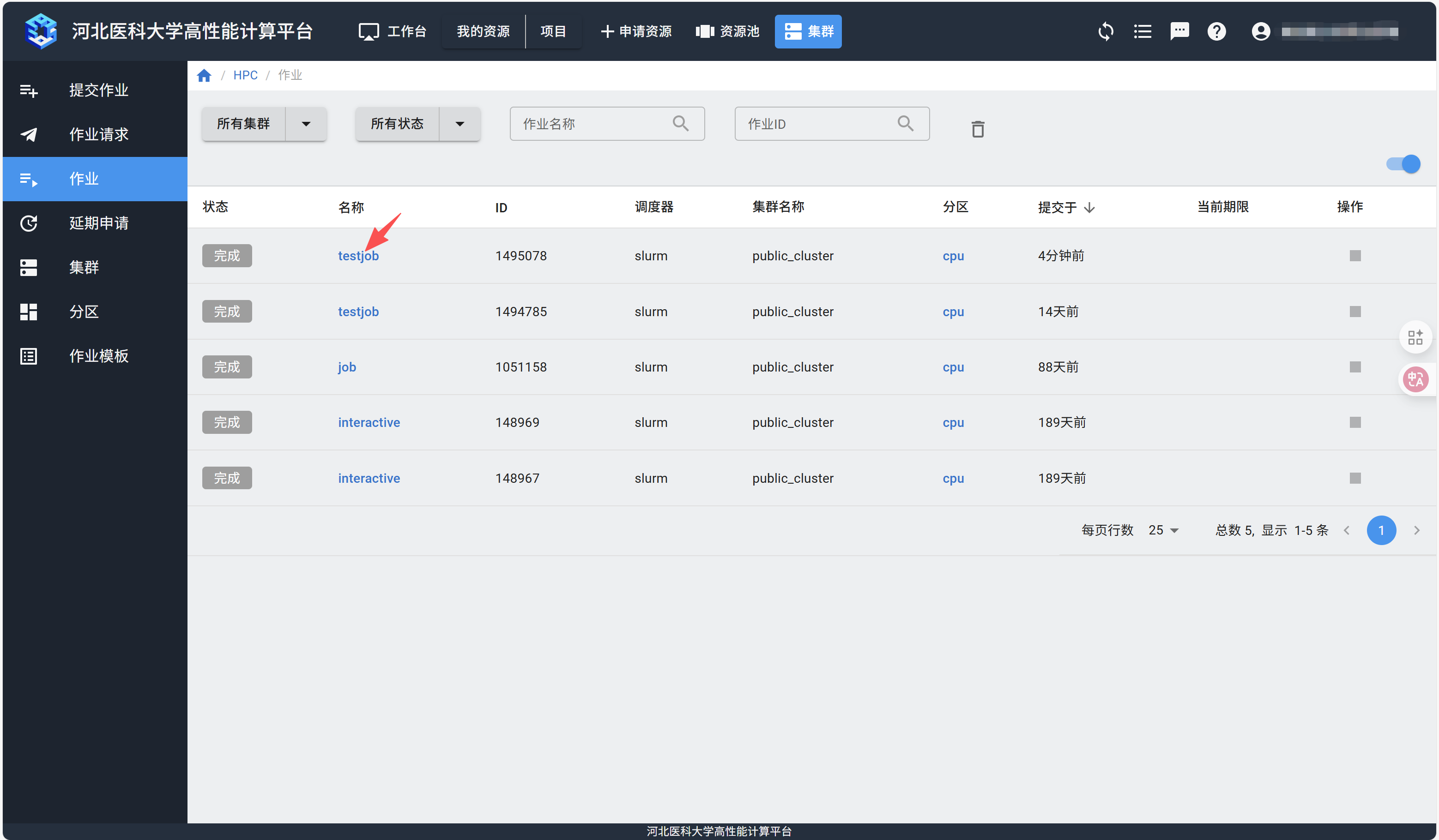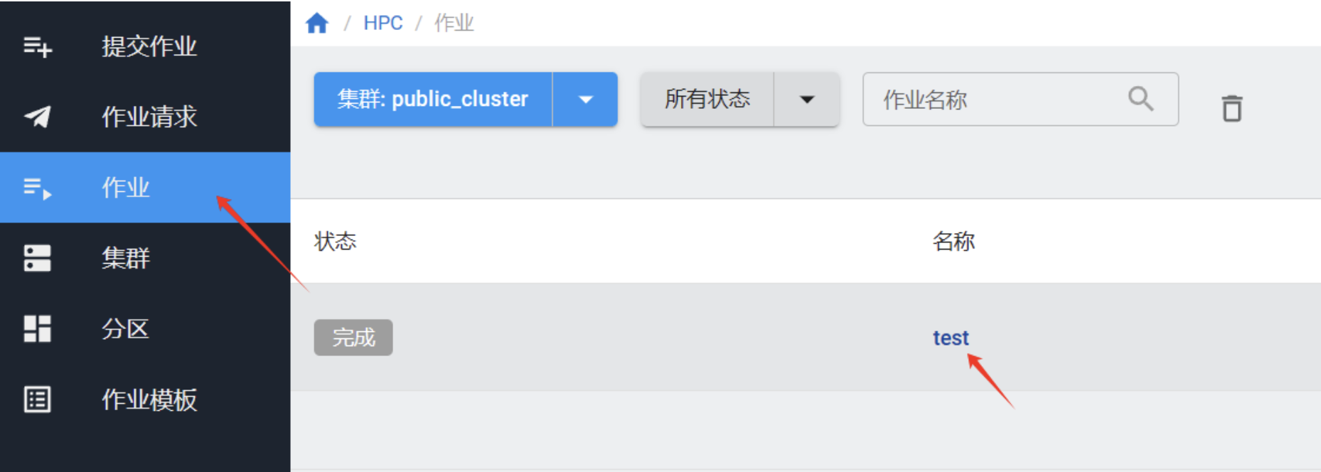 提交作业后,可以在“作业”页面查看是否提交成功。