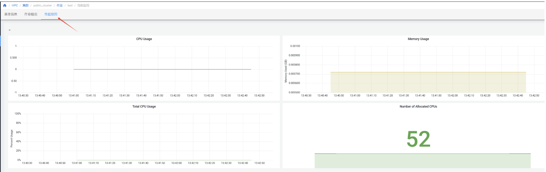 在”作业“页面点击作业查看作业详情,进入”性能监控“